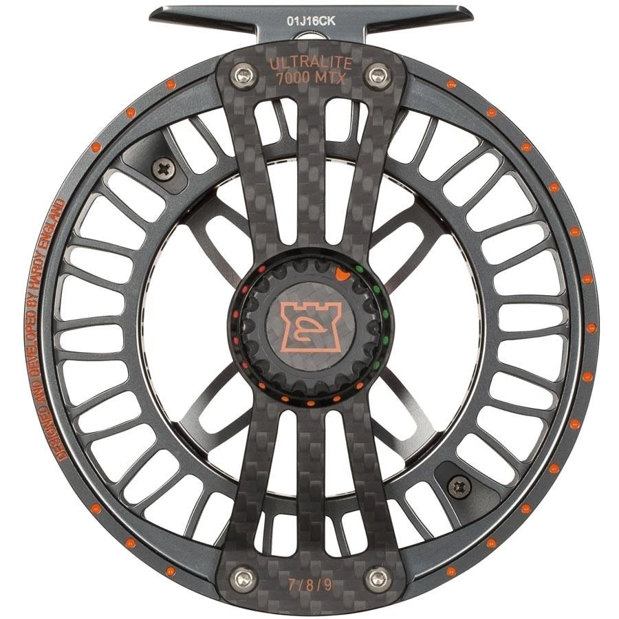 A new bench mark in reel design the Hardy Ultralite MTX is Hardy’s first fly reel to feature a Hybrid Carbon fibre / alloy main frame construction. Strong, light and with a stunning industrial design the MTX features a Carbon fibre drag system with 340 degree colour coded regulator, captive spool release and high line capacity.