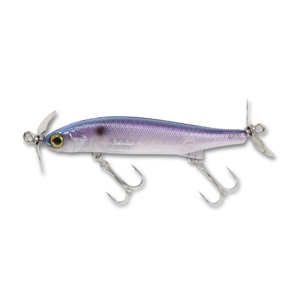 The Jackall I-Prop 75s was created to fish multiple levels of water, from just below the surface to targeting bass in the mid-column depths. The horizontal position of the lure gives it a realistic appearance while the perfectly placed props keep the lure stable underwater. Two props give out vibrations in the water mimicking the same vibrations baitfish make when swimming unthreatened. Specially designed props also give out the perfect resistance when retrieved to keep the lure in the strike zone longer. Continuously innovating, Jackall’s design of the rear hook eye virtually eliminates tangles with the hooks and prop allowing anglers to cast out and fish worry-free. The new inner-scale design also fives off a different flash, attracting bass from a distance.