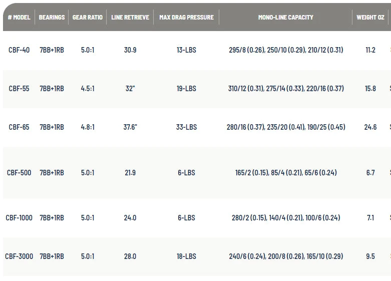 Baitfeeder spinning reels lend tremendous function to anglers. And this is not just in saltwater fisheries where baitfeeder spinning reels allow live baits to swim uninhibited. Use of baitfeeders is expanding dramatically in freshwater applications also, in fisheries like trout and catfish, where it’s to the angler’s advantage to ensure fish have a solid hold of baits before setting the hook. The Ceymar CBF are supreme in form and function in this refined and advanced selection.