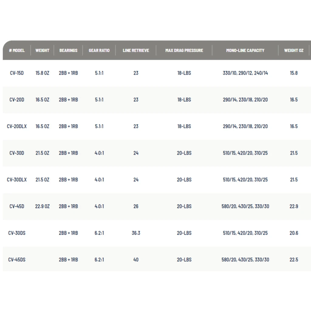 Okuma Convector line counter reels offer a powerful gearing and drag system platform. Feature aluminum and stainless steel components at all critical stress points, along with Okuma’s patented Mechanical Stabilization System that maintains parts alignment over the long term. The reels are available in both right and left hand retrieve to serve all anglers.