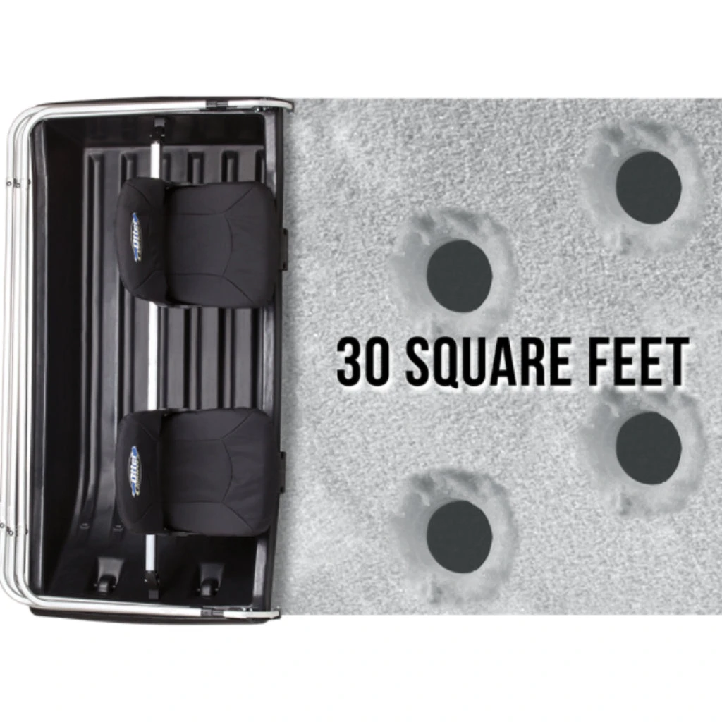 - Large 30 sq.ft. shelter comfortably holds up to three anglers (with optional 3rd seat)