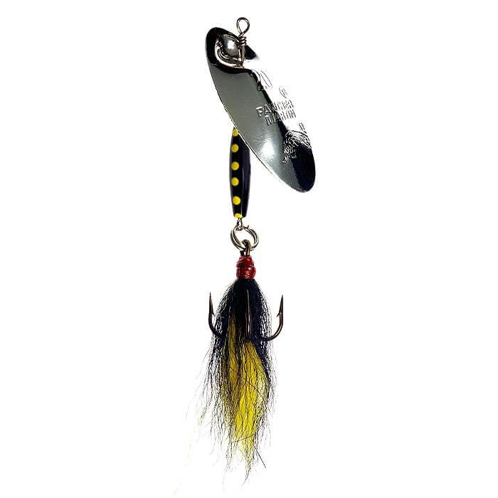 Panther Martin large bucktail spinners are made with the same design as tiny Panther Martin spinners – only bigger! These lures are highly productive for catching northern pike and musky! We’ve made the weighted bodies extra-long to keep the blade away from the hook while it’s spinning. Make long casts, retrieve steadily and cover as much water as you can. When you get a hit – HOLD ON!