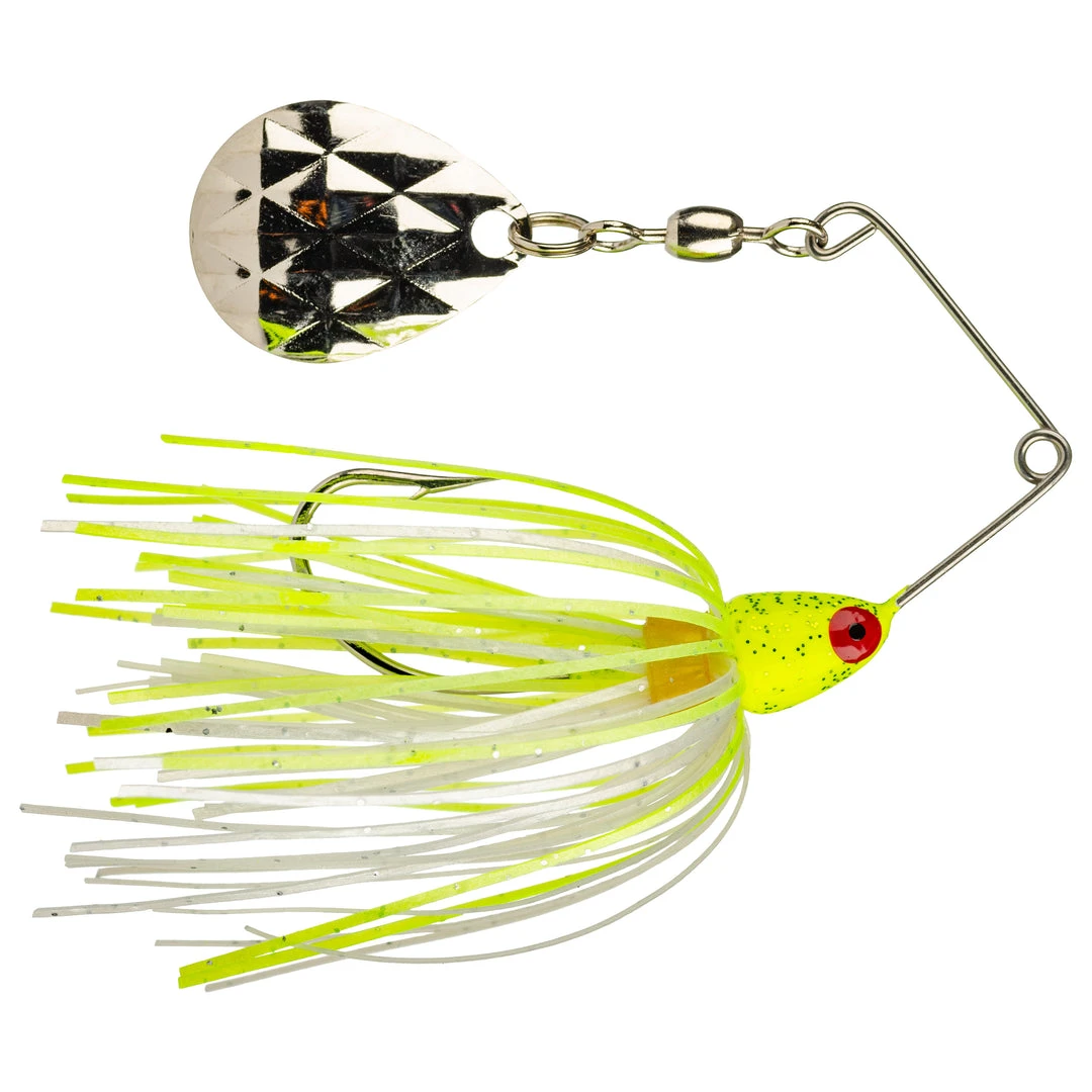 Weighing just 1/8-oz., the Strike King® Mini-King® Spinnerbait is ideal for crappie, smallies and white bass. Available in a wide variety of colors, each Mini-King Spinnerbait is outfitted with a 2.1 size Tennessee diamond blade for maximum flash and vibration. Every Mini-King Spinnerbait also features a durable diamond dust head and seductive silicone skirt.